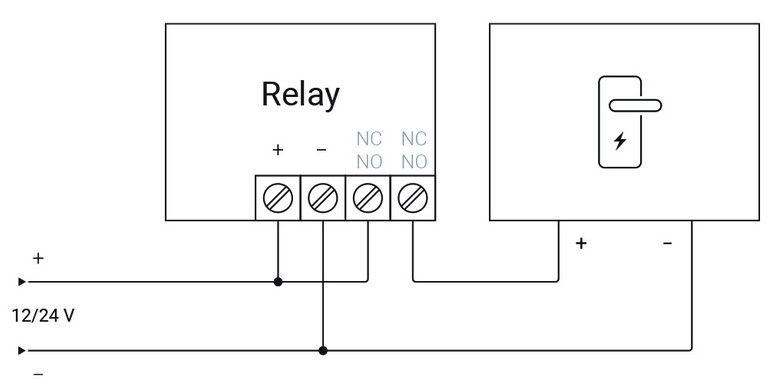 Принципова схема під’єднання Relay Jeweller до електрозамка 12/24 В