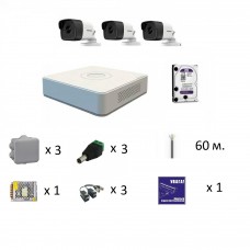 Комплект відеоспостереження Hikvision на 3 TVI / 2 MP камери