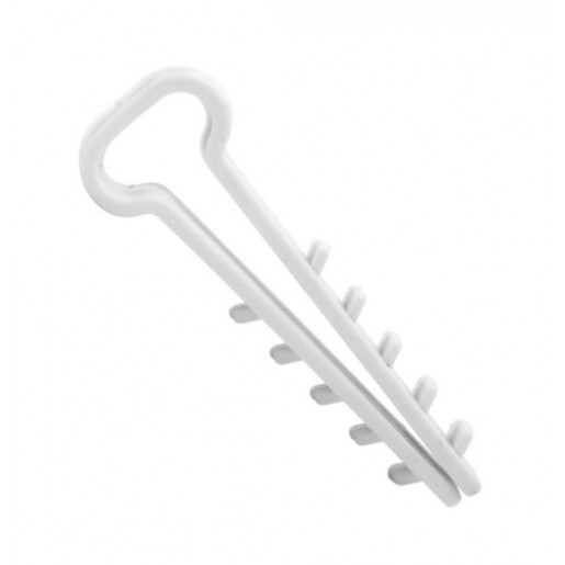 Дюбель-хомут “Ялинка» під плаский кабель Ø 12 білий — це кріплення, конструкція якого дозволяє закріпити кабель на робочій поверхні без використання шурупів, дюбелів або саморізів. Сфера використання кріплення досить специфічна — частіше за все його застосовують для прокладання проводки у відкритий спосіб. Підходить для утримування пласких кабелів різних видів до 12 мм на цегляних або бетонних робочих поверхнях. Дюбель-хомут “Ялинка» під плаский кабель Ø 12 білий одночасно виконує функції закладної та фіксуючої деталі, але є суцільним виробом. Потребує мінімального комплекту інструментів для установлення.