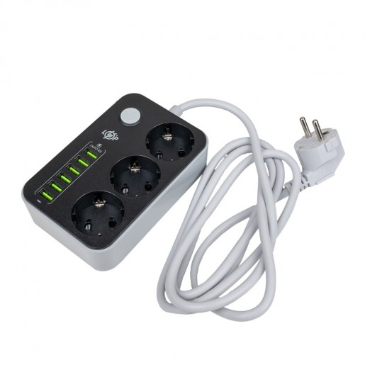 Мережевий фільтр (подовжувач) LP F24U6 (3x220V-2500W, 6xUSB-3,4A)
