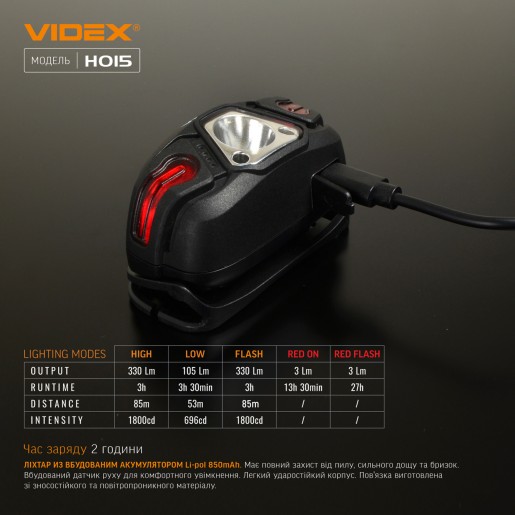 Налобний світлодіодний ліхтарик VIDEX VLF-H015 330Lm 5000K