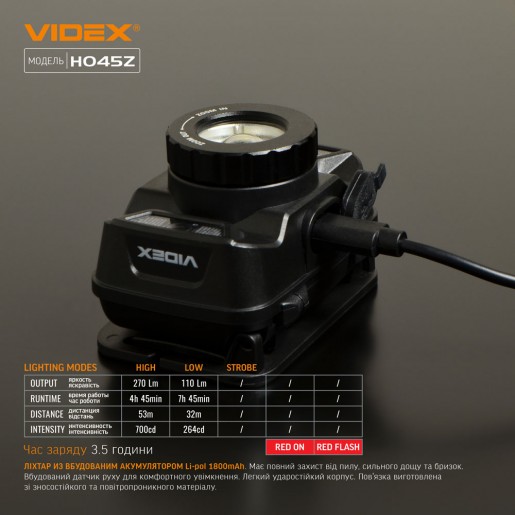 Налобний світлодіодний ліхтарик VIDEX VLF-H045Z 270Lm 5000K