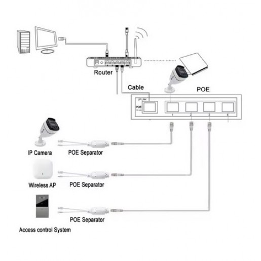 Універсальний адаптер з підтримкою технології РоЕ використовується для того, щоб підключити камери без підтримки РoЕ до відеореєстратора чи комутатора з POE 48 Вольт.