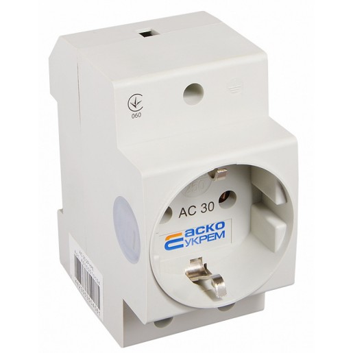 Розетка Аско-УкрЕМ AC30 2Р+РЕ на DIN-рейку - призначена для установки в розподільчий щит і служить для підключення переносного світильника або електричного інструменту малої потужності під час профілактичних і ремонтних робіт в електричній збірці за місцем установки.