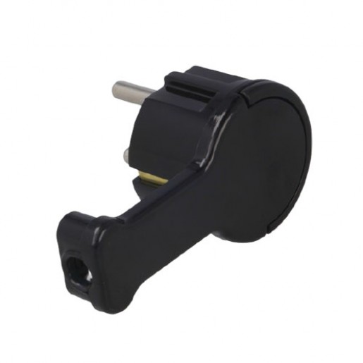 Кутова однофазна вилка із заземленням Timex - необхідна для підключення до відповідних шнурів електроживлення для більш вимогливого споживача. Вона є незамінною для підключення пристроїв на будь-якій відстані розподілу електроенергії та в будь-яких умовах підключення електроприладів до мережі.